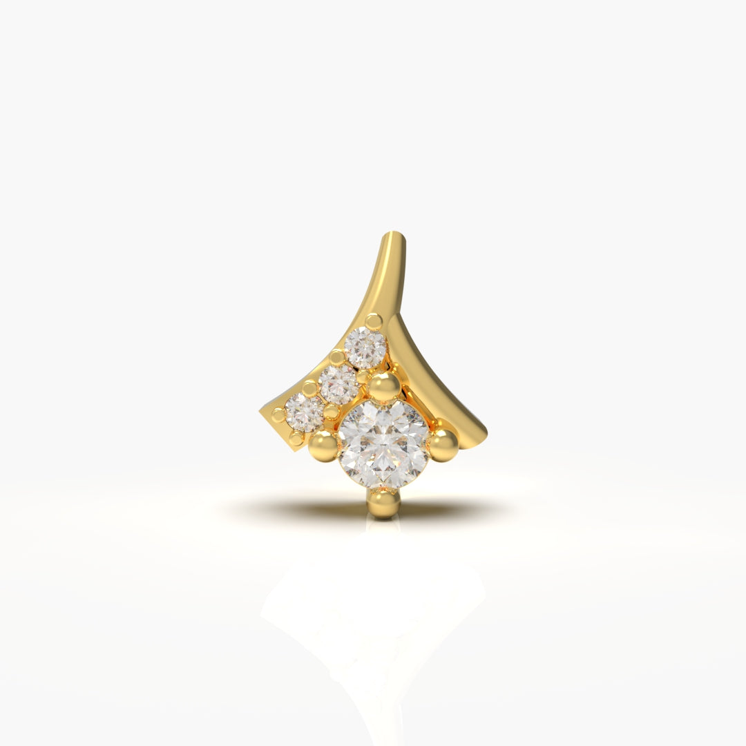 Elevate your everyday elegance with this refined diamond nose-pin, crafted from premium 18kt gold. Weighing just 0.400 milligrams, this delicate piece combines lightweight comfort with timeless sophistication. The 0.05-carat diamond catches light beautifully, adding a subtle sparkle that complements any complexion. Perfect for those seeking understated luxury in a versatile accessory that transitions seamlessly from day to evening wear.