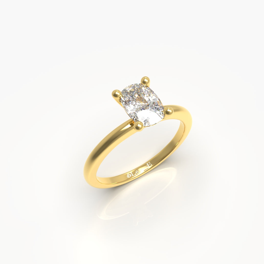This 1 Carat Cushion Solitaire Engagement Ring features a stunning lab-grown diamond with VVS/VS clarity and E-F color grade, reflecting expert craftsmanship and superior quality. Set in 2 grams of 18kt gold, the ring offers enduring elegance and ethical sophistication—perfect for marking a lifelong commitment with brilliance and responsibility.