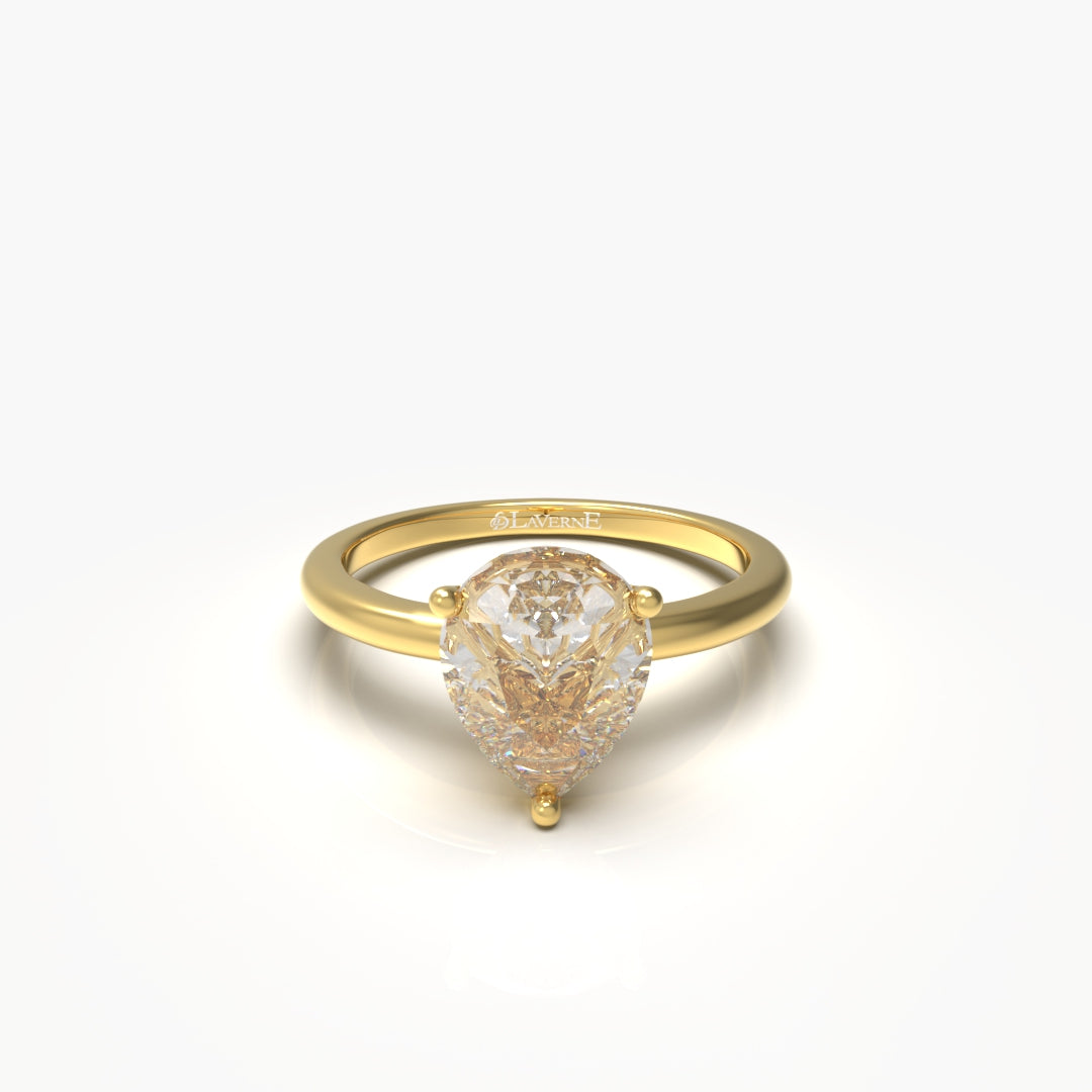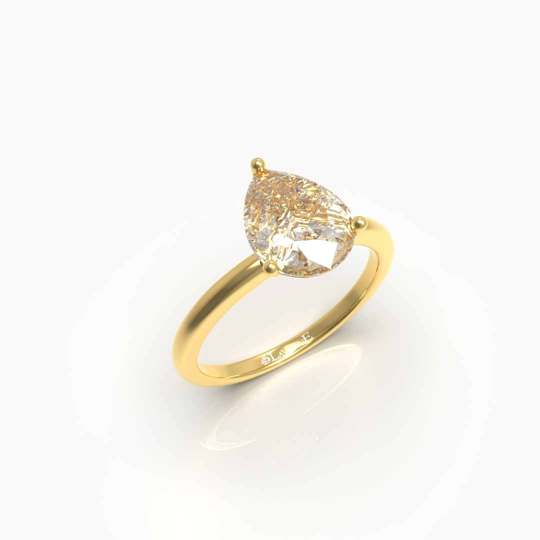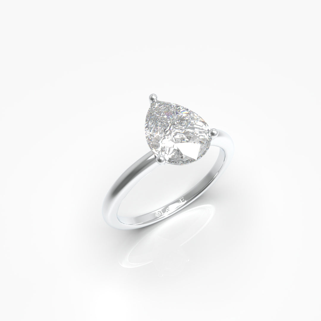 This 1 Carat Pear Solitaire Engagement Ring features a stunning lab-grown diamond graded VVS/VS with a color range of E-F, ensuring exceptional clarity and brilliance. Set in 18kt gold weighing 2 grams, its elegant pear shape offers a timeless design that enhances the wearer's style with sophistication and sustainability. Ideal for those seeking a high-quality, ethically sourced symbol of commitment.