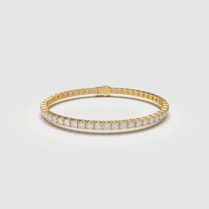 Elevate your jewelry collection with this sophisticated lab-grown tennis bracelet, featuring 6 carats of brilliantly cut diamonds set in lustrous 18-karat gold. Weighing 6.5 grams, this piece combines timeless elegance with modern sustainability. Lab-grown diamonds offer exceptional quality and clarity while providing an environmentally conscious alternative to mined stones. The continuous line of sparkling stones creates a refined aesthetic perfect for both everyday wear and special occasions. A versatile investment piece that transcends trends.