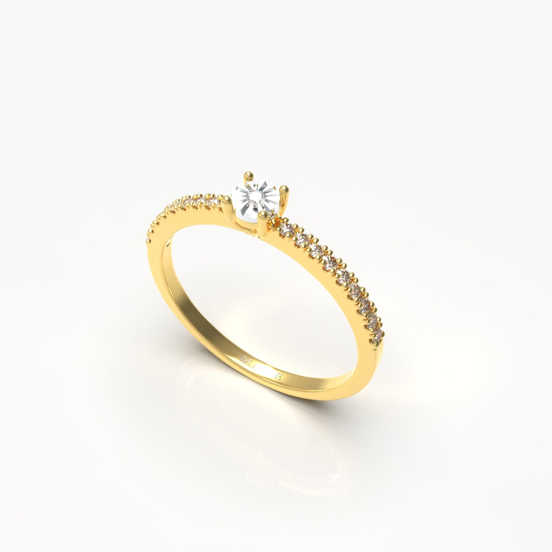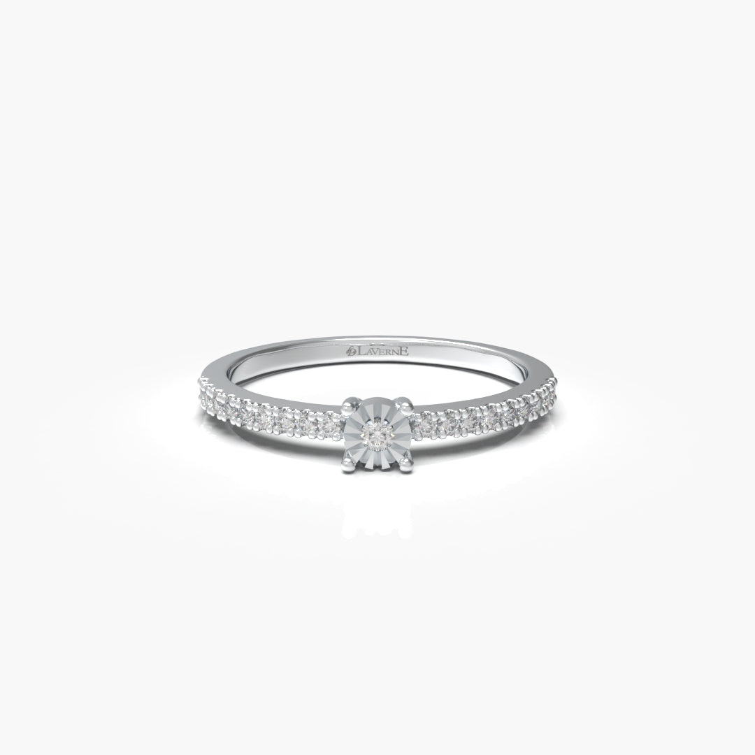 This Classic Diamond Ring is crafted in 18kt gold weighing 1.55 grams, showcasing 19 meticulously set diamonds totaling 0.11 carats. Its refined design balances subtle sparkle and durable luxury, perfect for elevating everyday elegance with expert craftsmanship.