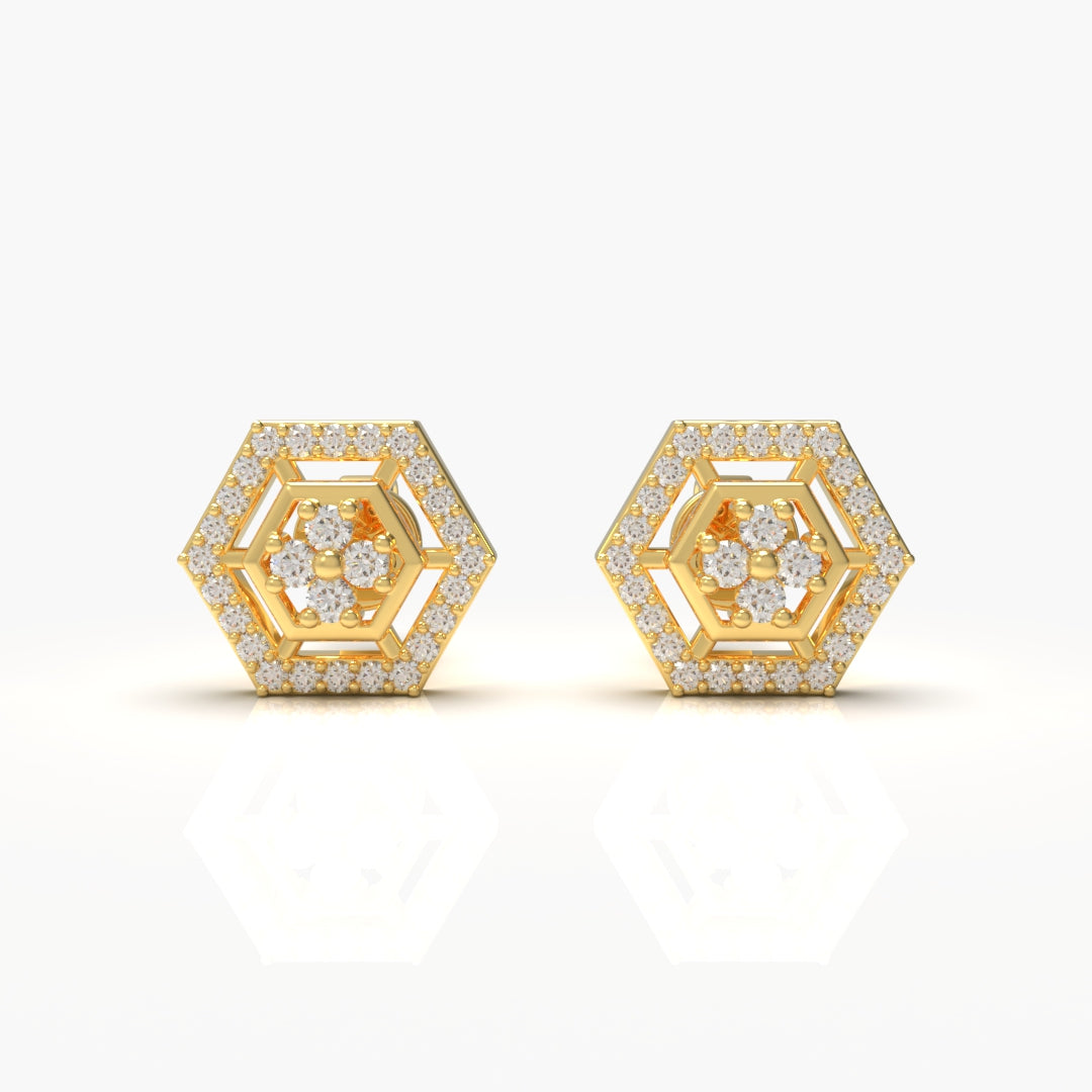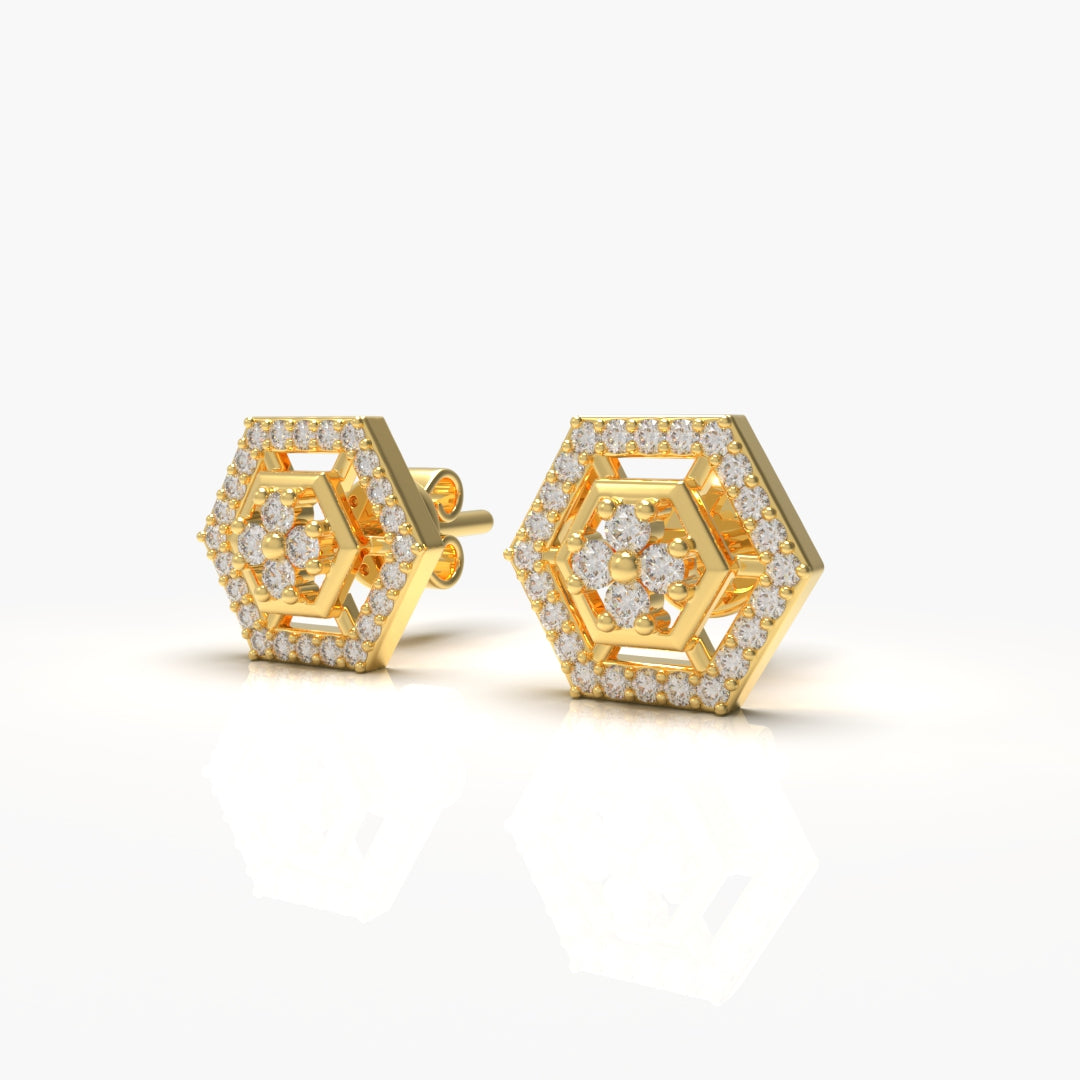 These Diamond Hexagon Earrings showcase expert craftsmanship with 18kt gold weighing 1.39 grams and 56 diamonds totaling 0.20 carats. Their unique hexagonal shape balances modern geometry with refined elegance, making them a sophisticated accessory for discerning jewelry enthusiasts.